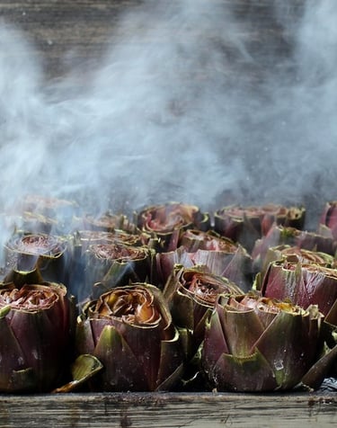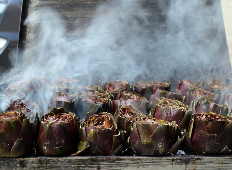 Il carciofo Licatese è riconoscibile per le sue spine,  particolarmente saporito e tenero, come nella foto "la morte sua" è cotto nel barbecue direttamente sulle braci con abbondante olio e sale.